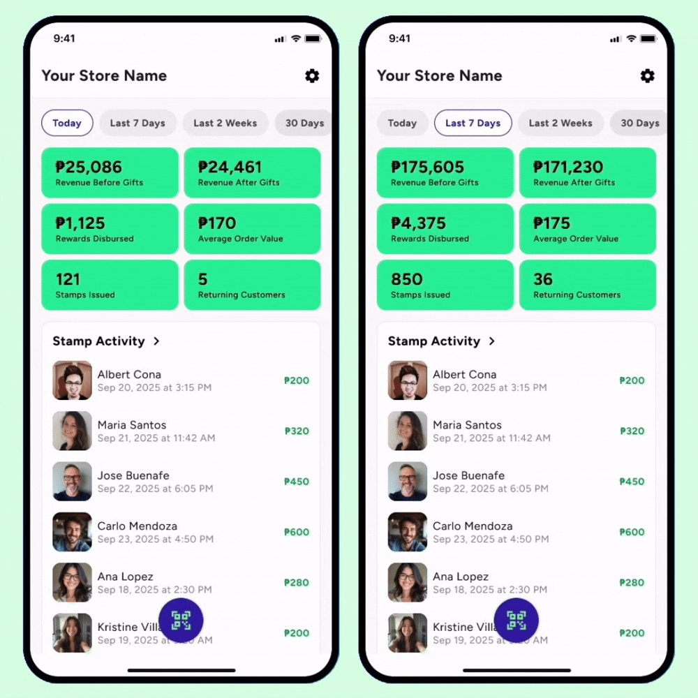 Yes. You can track return visits, stamp redemptions, customer activity, and revenue insights—all from one simple dashboard.